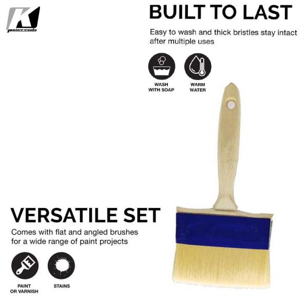 The polyester bristles are thick so that they can hold more paint and enable you to complete a painting assignment faster, thus saving time. The ends are feathered so that the paint holding and distribution capacity is at the highest.